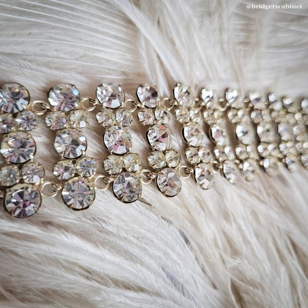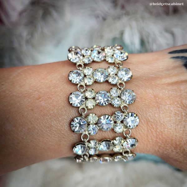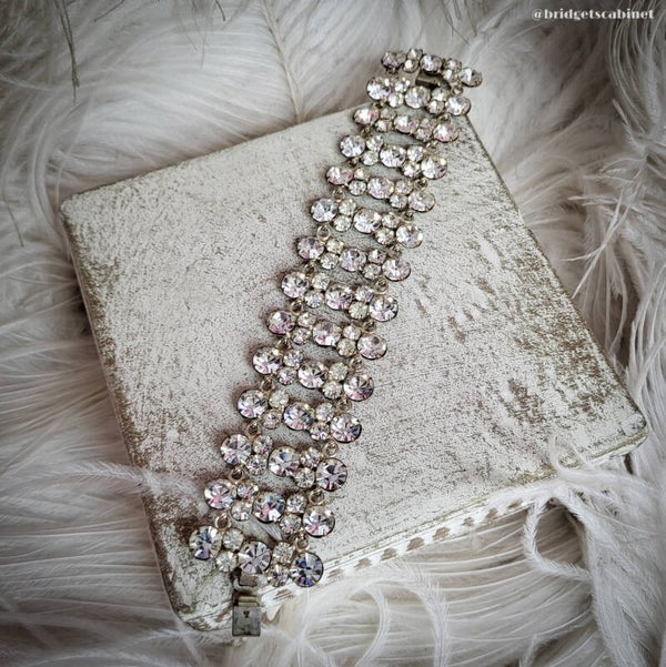 Beautiful antique french paste stones bracelet showgirl closes with a clip that has to be pressed.
