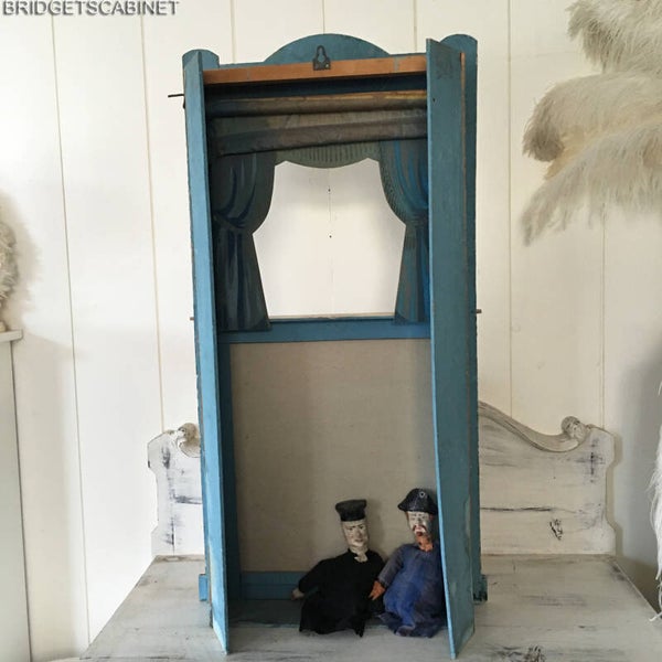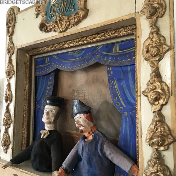 Bridget's Cabinet offers this lovely antique French Guignol puppet theater in a childs size with two antique hand dolls.