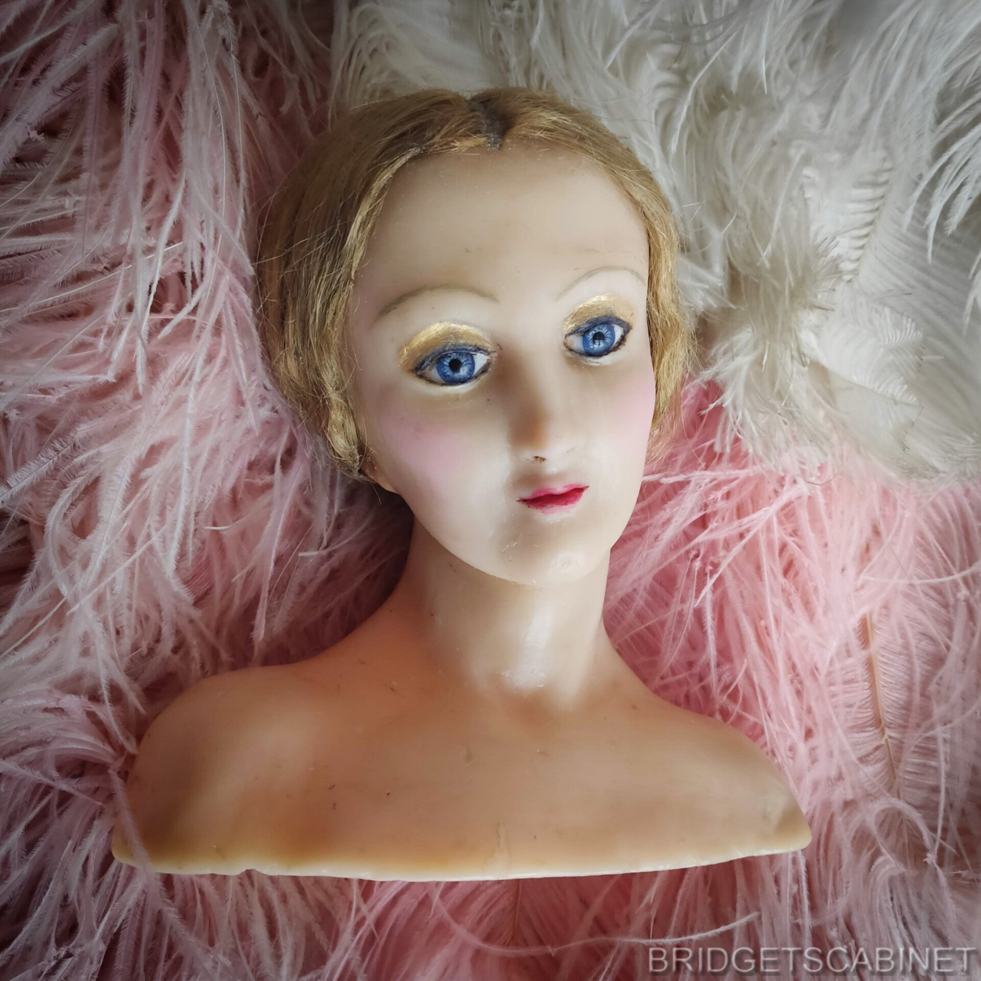Bridgets Cabinet found this very rare Late 19th Century Wax Boudoir Bust from France. it is a small-sized bust so not a life-size bust like the ones they used in the French stores for displaying Wigs, Hats and Jewellery.