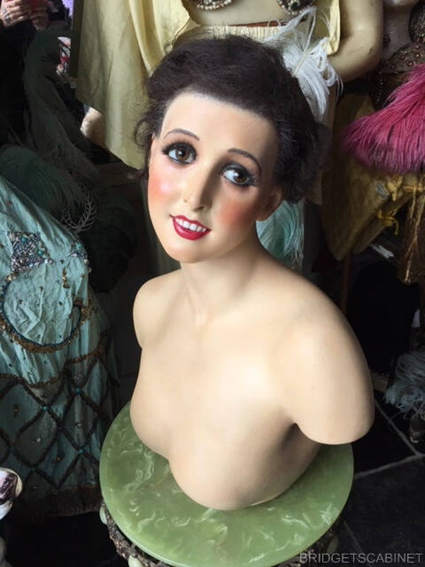 Beautiful rare Pierre Imans wax mannequin bust around 1910. The mannequin is in extremely good condition. She has real porcelain teeth and glass eyes. Pierre Imans the most famous wax maker during those days was making a model named Gaby, she must have been a stunning beauty the woman who stood model for this model range. The mannequin is a so-called wig model, she comes with a hairnet, she has been used to show wigs, hats and jewellery on the counters of the French Magasins during those years. A rare but special mannequin, from French Paris, an extraordinary piece to complete your collection or just as an eye-catcher decoration. the wax busts become very rare and especially when they are in such great condition as this one, almost impossible to find. after more than 100 years old she is still mesmerizing.