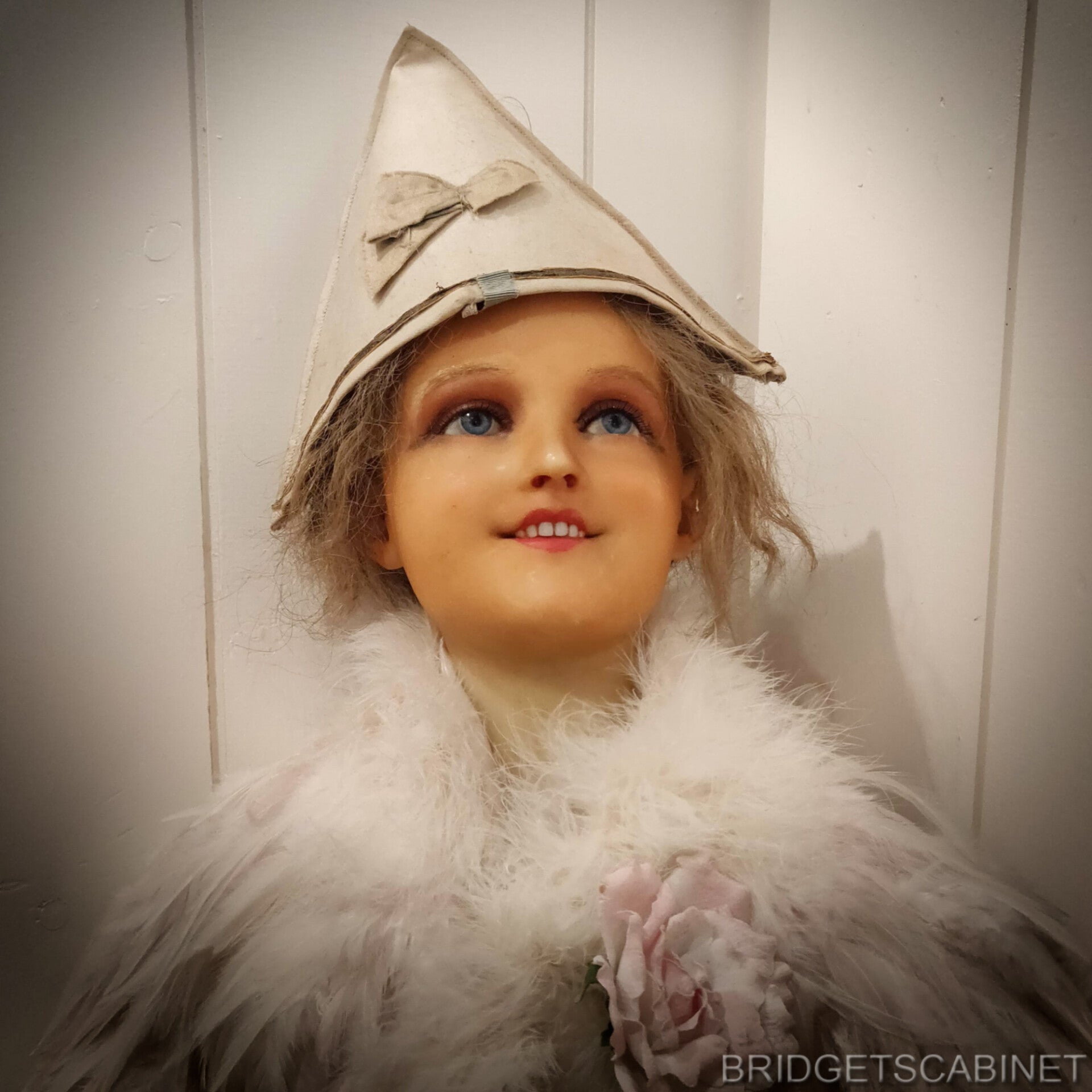 She is from around 1900 and made by the famous wax mannequin maker Pierre Imans from Paris. this mannequin was once standing in a French "Magasin" displaying clothing. Pierre Imans made his mannequins after real human models so you can imagine what a handsome cute little model this child must have been
