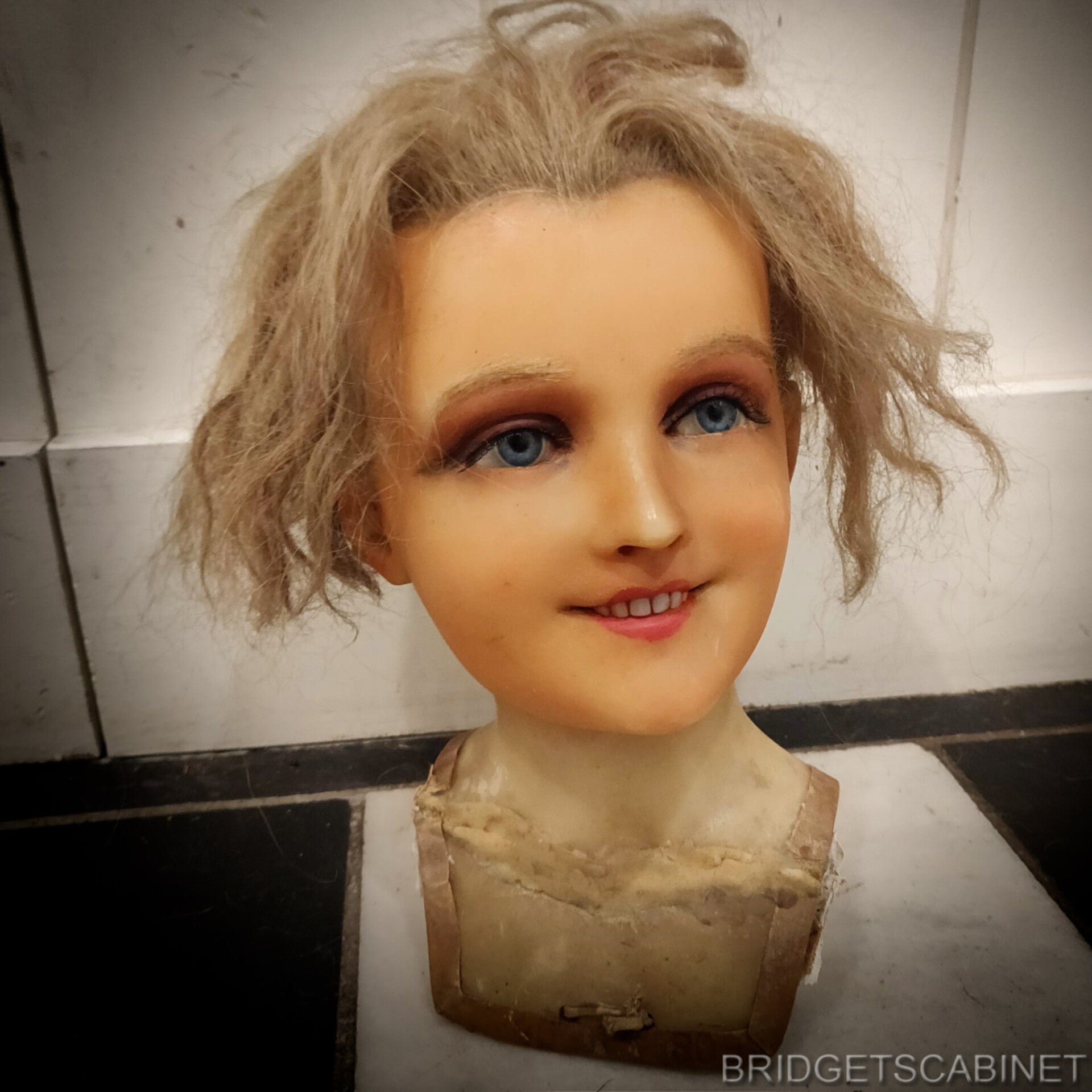 A beautiful French full-size wax child mannequin, such a beautiful expression. every part is still original, she has implanted hair and this hair is still in good condition as can be seen in the attached pictures. She has real glass eyes and porcelain teeth.