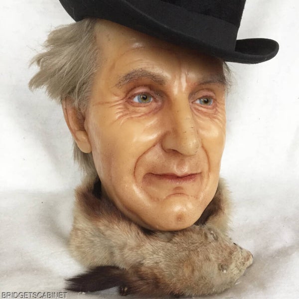Bridget's Cabinet is offering this beautiful 1900 Wax male head, normally we only searching for female wax items but this one we could not ignore, because he is so beautiful and so real. look at all the details, still has his original grey/silver hair and these realistic glass eyes. he is life-size and in good condition, he has a minor spot on his forehead but this is covered by his hair. If you have questions or you want some more information, please do not hesitate and drop me a mail!!