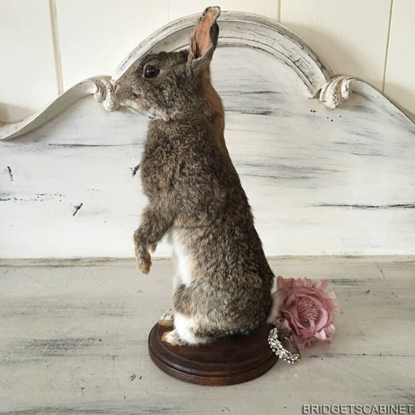 A stunning piece from the past, old taxidermy techiniques make this adroable rabbit so special. this beauty is in a standing position and still in perfect conditions, because of its adorable expression we had to add this one to our taxidermy collection.