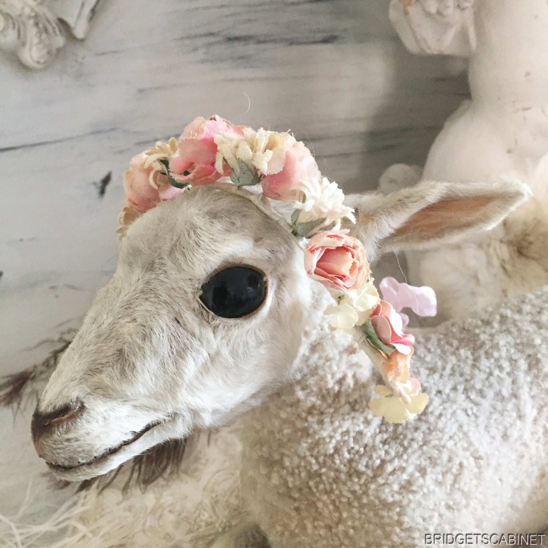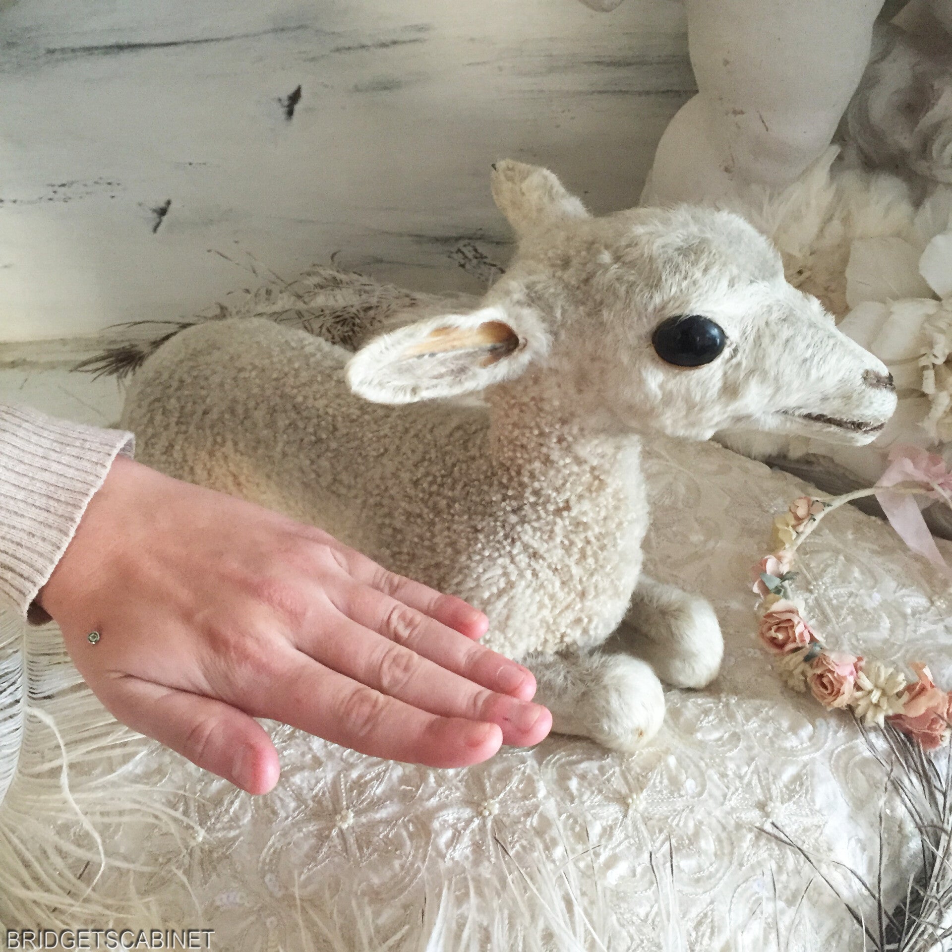A sweet tiny antique baby lamb from France. Look at the adorable face, this beautiful expression. for her age she is in perfect condition, it's a tiny one as you can see in one of the pics, compared to the shown woman's hand. A stunning decoration piece, Bridget's Cabinet is always in for offers and layaway plans, for this or other information, just drop me an email!!