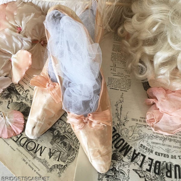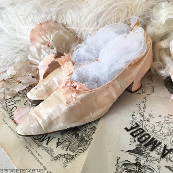 Bridget's Cabinet found this lovely pair of 19th. Century boudoir women shoes. a stunning colour, the shoes came out of a collection of shoes we bought from a French museum which use these shoes in exhibition about Parisian street life in the 19th Century. the shoes have been behind glass for years. The shoes are a bit tattered but still very awesome for displaying. This could be an unique addition to your collection