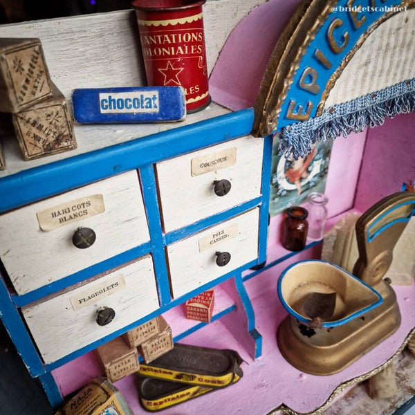 As larger epicerie stores become increasingly rare, this antique toy makes for a stunning decoration piece or collector's item. Be sure to carefully examine all photos, as they are an important part of the description and the store comes with all items shown. This beautiful antique toy has been loved and played with, and now it can be a part of your collection.