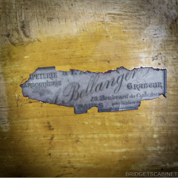 Overall this precious cabinet is in great condition also considering this is an 1870s piece. Also unique is that there is still a tag on the bottom which reveals the branding and the place of origin which is Paris France.