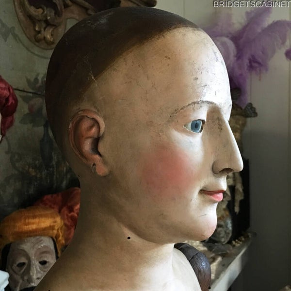 This Santos Cage Doll comes from Italy and is still in really perfect condition considering this one is around 300 years old. just a little chunk is missing on her hips.