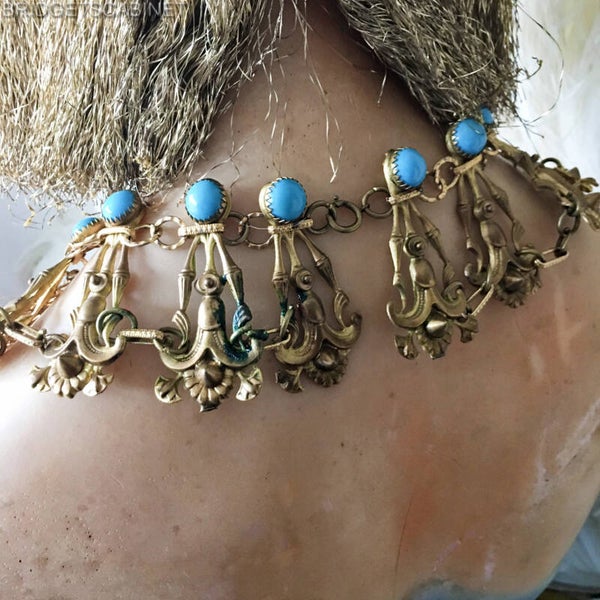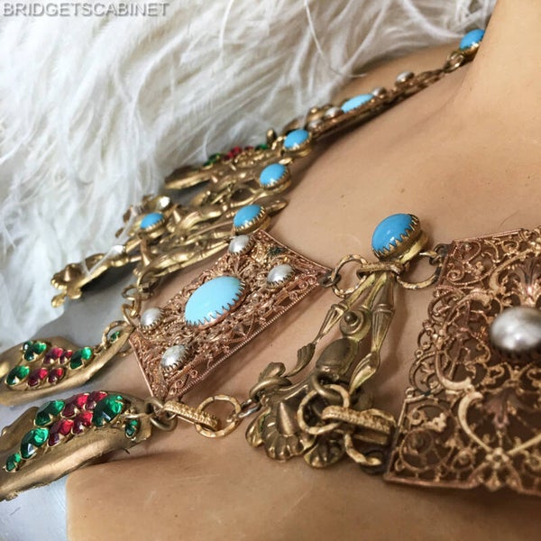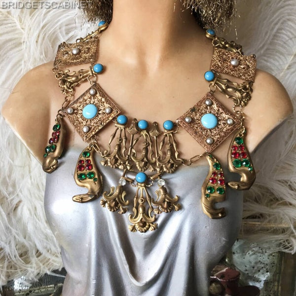 Bridget found this beautiful vintage Theater Egyptian revival Mata Hari Necklace from the 1930's, this item has been used in the Folies Bergeres Paris during those years.