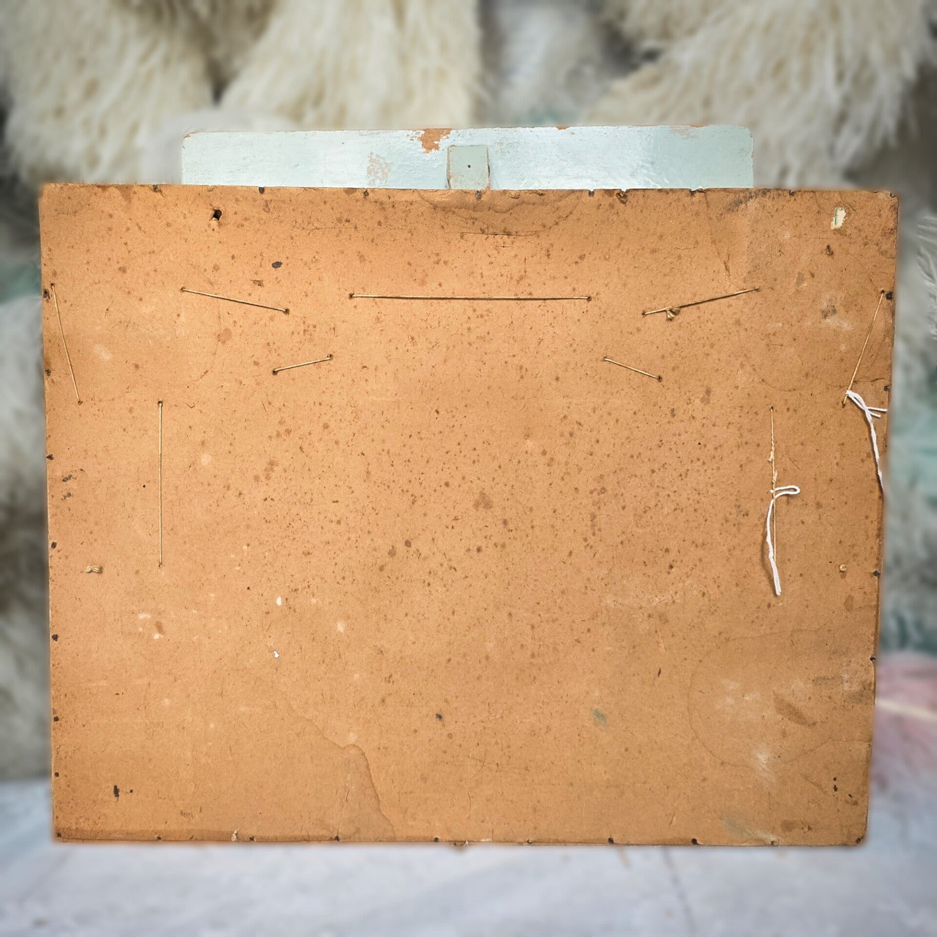 Capturing the essence of childhood joy, this toy beckons with its cardboard backdrop adorned with images of playful children amidst a treasure trove of packages and playthings. While time has left its gentle mark, adding a patina of character only enhances this cherished piece's allure.