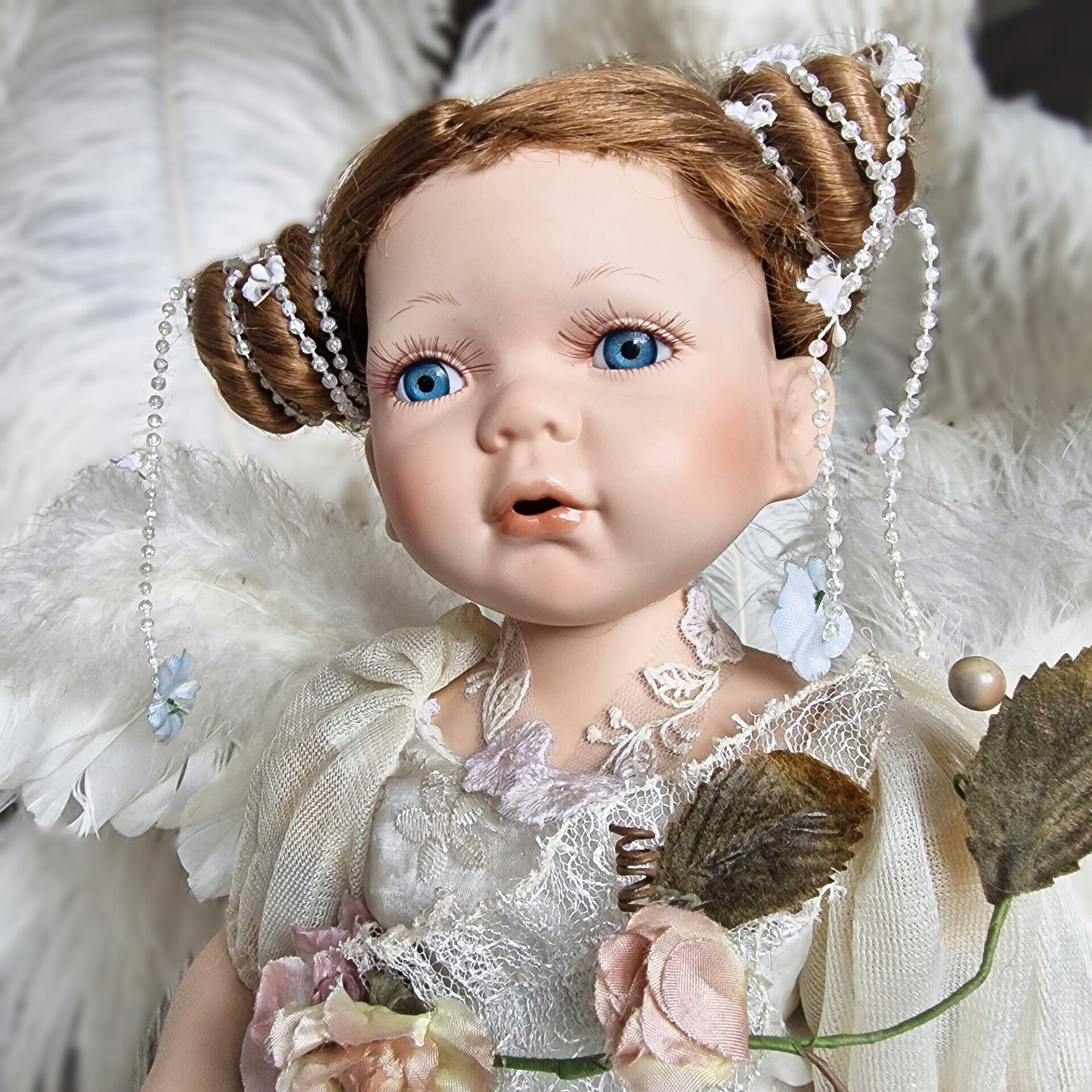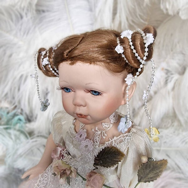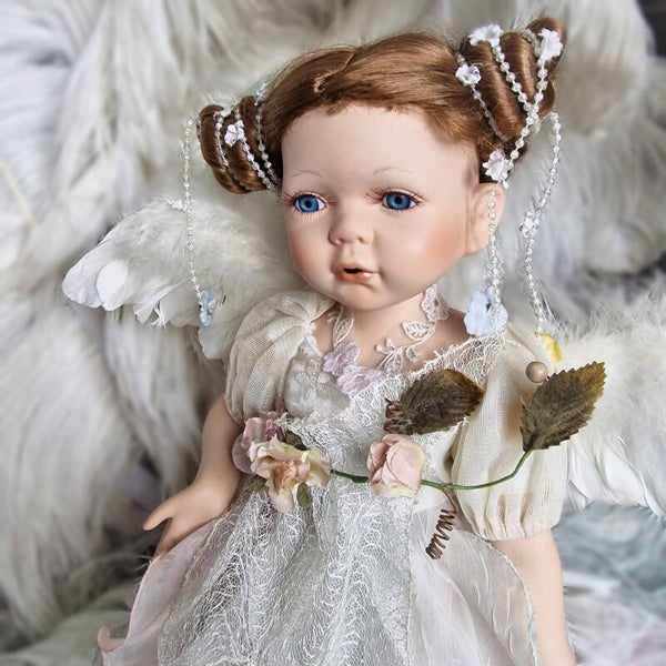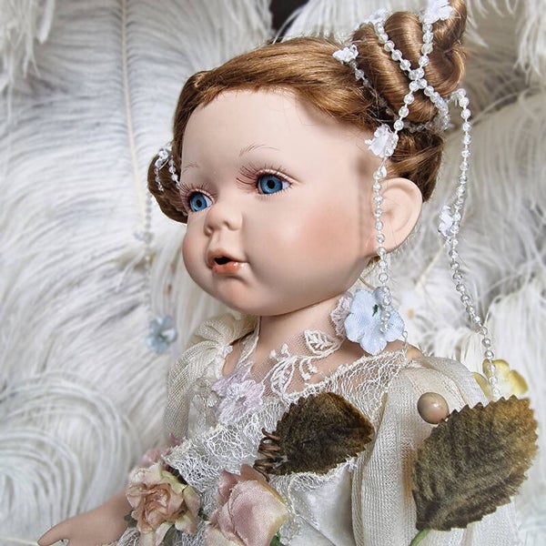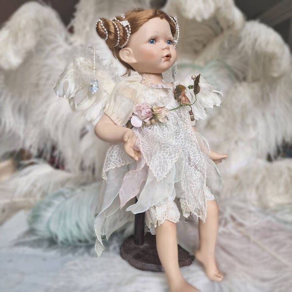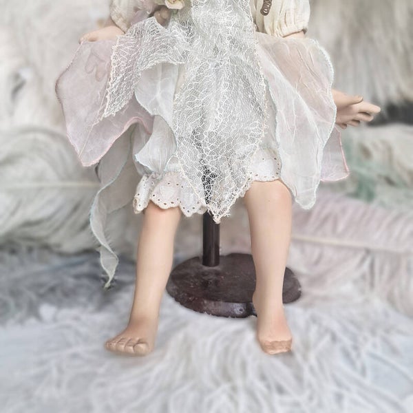 This charming vintage artist doll/statue, crafted in the 1980s, comes from a French collection, and I have several more dolls available from the same source. The doll is in good condition and features a sweet, finely detailed face with a touch of fairytale magic in her expression. She is likely a limited edition collector's doll, adding to her unique appeal.