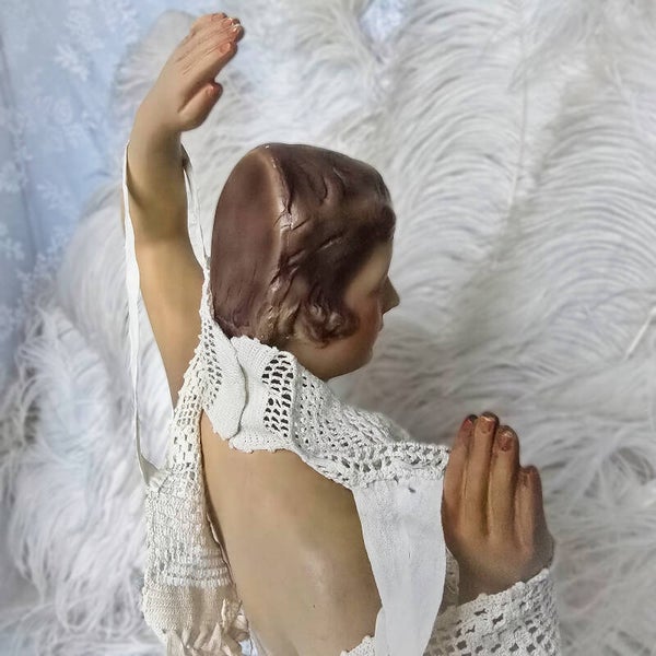 What makes this bust particularly special is its design: unlike most busts of this kind, it features beautifully sculpted arms spread wide, perfect for displaying lingerie, boas, or jewelry. I’ve styled it in the photos to provide inspiration, but the possibilities are endless—decorate it with your favorite pieces or leave it as a standalone statement in your boudoir.