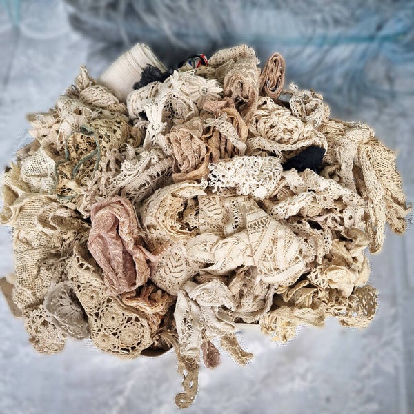 Lot Antique French Lace Ribbons Crochet Trims Textiles Doll Restoration Sewing Craft Millinery Parts