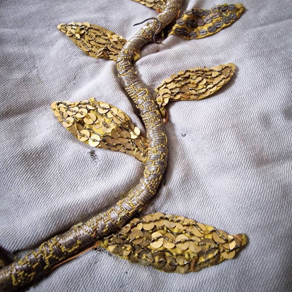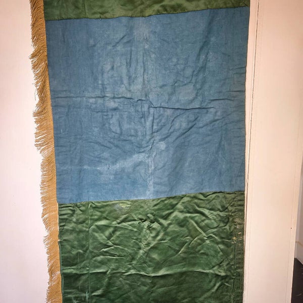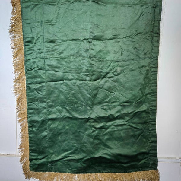 The altar cloth is lined on the back for added durability. While it shows signs of use consistent with its age, it remains a versatile textile that can be repurposed as a wall hanging, a decorative pelmet, or incorporated into cushions and other home decor projects.